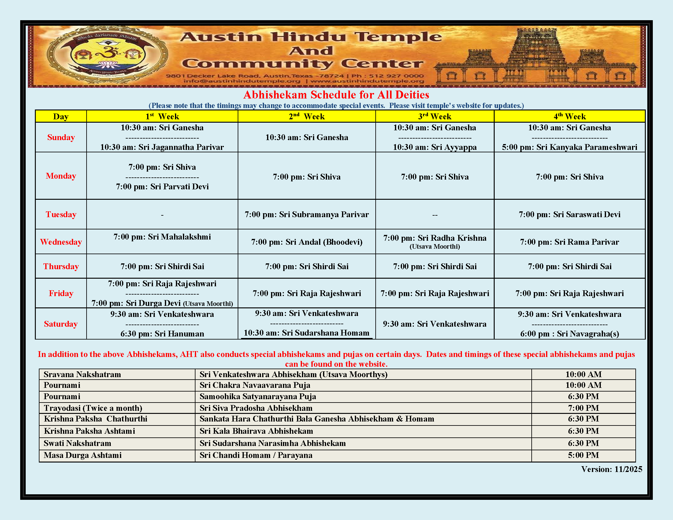 Regular Puja Schedule